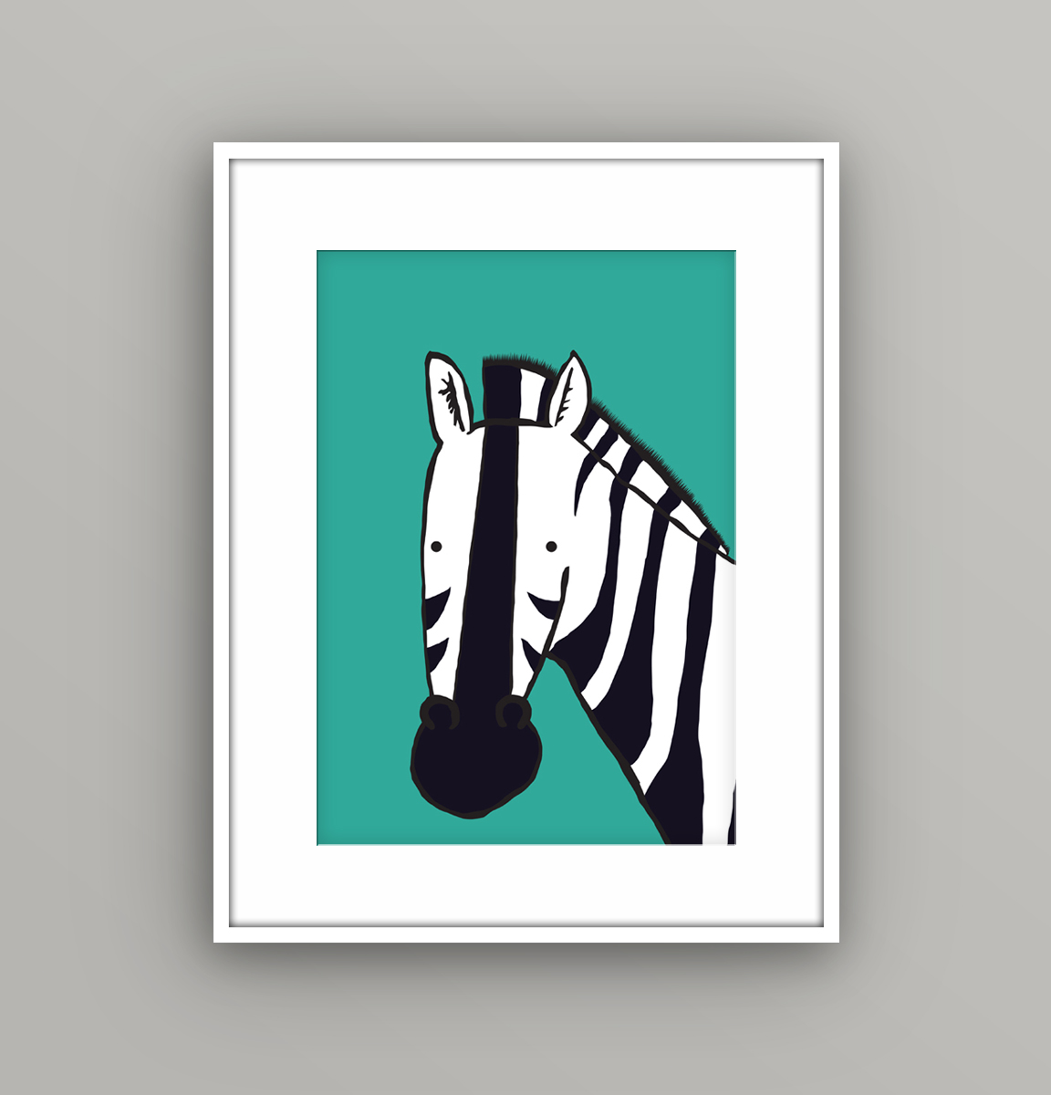 Bring bold, modern style to your walls with this zebra art print, featuring a playful illustrated zebra with striking black-and-white stripes set against a vibrant teal background. Printed on high-quality matte paper, this artwork offers a smooth, non-glare finish that enhances crisp lines and strong contrast for a clean, contemporary look.